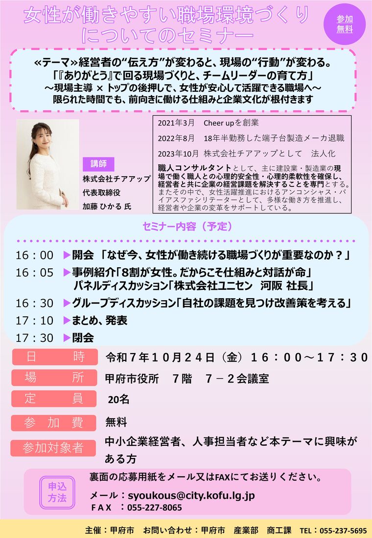 【甲府市】女性が働きやすい職場環境づくり についてのセミナー