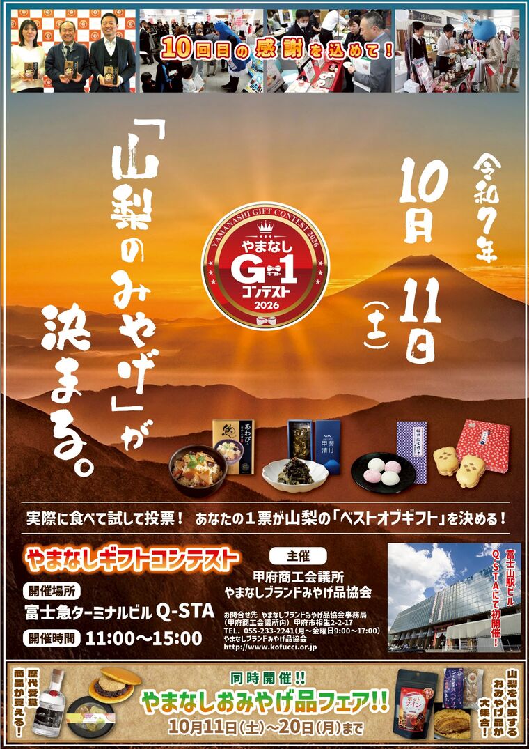 10月11日(土)に山梨のお土産NO.1を決めるコンテスト「やまなしギフトコンテスト2026」が開催されます。