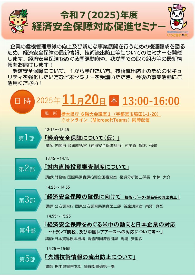 日 時 2025年11月20日(木)13:00~16:00 場 所 栃木県庁 6階 大会議室1(宇都宮市塙田1-1-20)