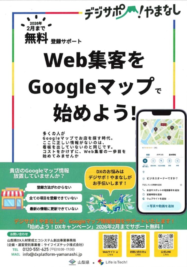 多くの人がFGoogleマップでお店を探す時代。ここに正しい情報が出ていないのは看板を出していないのと同じです。コストをかけずに、Web集客の一歩目を始めてみませんか?