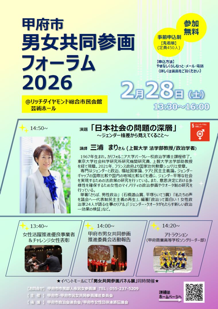 【甲府市】「甲府市男女共同参画フォーラム2026」開催のご案内