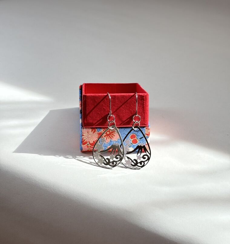 山梨県が誇る世界遺産・富士山をモチーフに、山頂の雪、富士五湖の波、国花の桜をデザインに取り入れたピアスです。特殊加工を施した山頂の雪と桜が控えめながらも華やか...